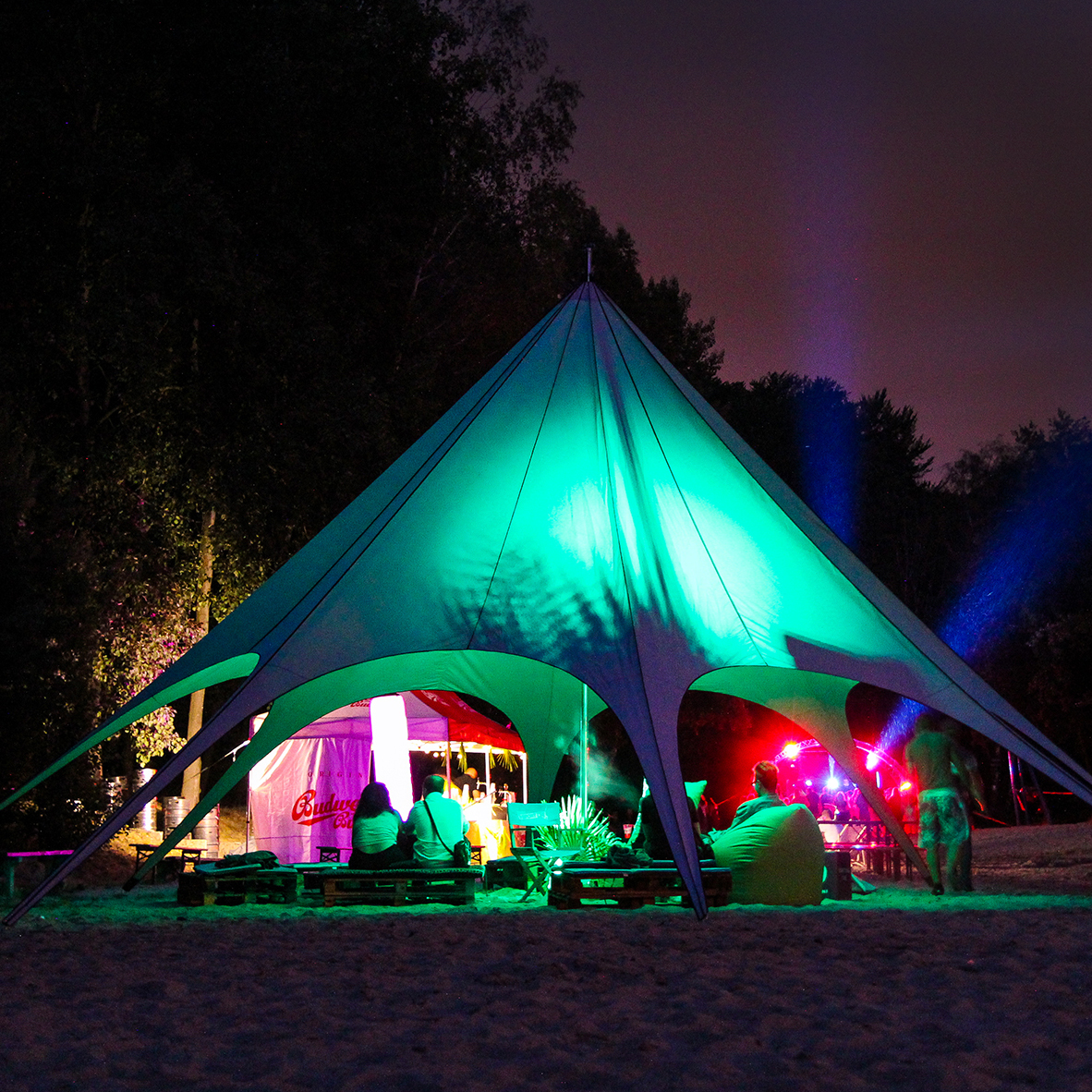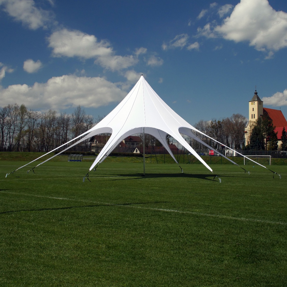 Namioty dwumasztowe typu Startent uświetnią Twój event. Ich nietuzinkowy kształt i atrakcyjny wygląd zrobią furorę i spowodują, że Ty i Twoi goście poczujecie się jak gwiazdy. Niewielka waga i szybkie wznoszenie zapewniają mobilność namiotu, a pod jego dachem zmieści się wiele osób.