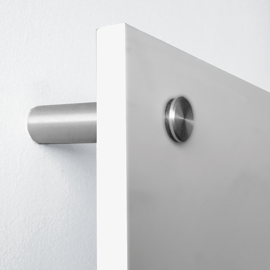 Dystanse ścienne: Dystanse służą do montażu płyty na płaskich podłożach. Uchwyty są w kolorze srebrnym i można je zamówić w zestawach o różnej wielkości. Materiały montażowe, takie jak śruby czy kołki, NIE wchodzą w skład zestawu i należy je dokupić oddzielnie w sklepie budowlanym.