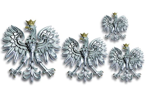 Fundamentem wyrobu jest odporny stop cynkowo-aluminiowy, który umożliwia odwzorowanie bardzo precyzyjnych detali upierzenia, korony i pazurów. Dzięki nałożeniu srebrzystej warstwy wykończeniowej, całość prezentuje się niezwykle podniośle i jest skutecznie chroniona przed procesami starzenia. Metoda ta gwarantuje, że postać orła przez lata utrzyma swój blask i ostre rysy, będąc dostojną, wypukłą formą godła państwowego.