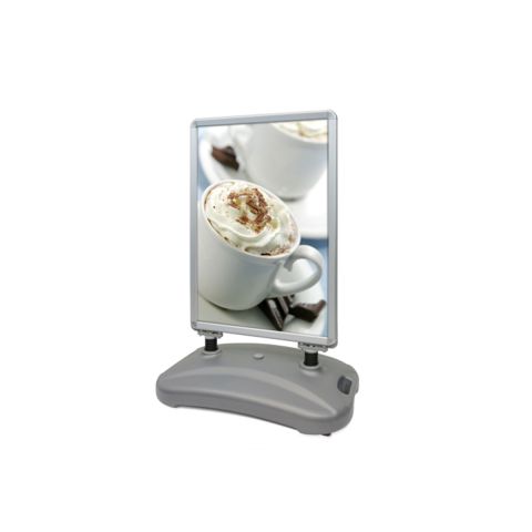 Nasz model Premium Outdoor łączy w sobie stabilność i komfort. Zintegrowany zbiornik na wodę i metalowe sprężyny zapewniają stojakowi na plakaty stabilność do 6. stopnia siły wiatru w skali Beauforta. Nawet po napełnieniu, model można bez wysiłku przesuwać dzięki wbudowanym kółkom. Całkowicie wodoodporny i z możliwością umieszczenia grafiki po obu stronach, to rozwiązanie jest pierwszym wyborem dla intensywnie uczęszczanych obszarów zewnętrznych, gdzie bezpieczeństwo i łatwość obsługi są najwyższym priorytetem.