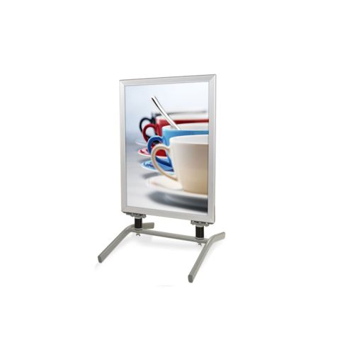 Potykacz reklamowy to wolnostojący, zazwyczaj dwustronny stojak reklamowy. Klasyczna forma w kształcie litery „A” składa się z ramion ramy, które rozkłada się, aby zapewnić stabilną pozycję. Do zastosowań zewnętrznych i wewnętrznych dostępne są również inne warianty, na przykład z obciążoną podstawą na wodę.